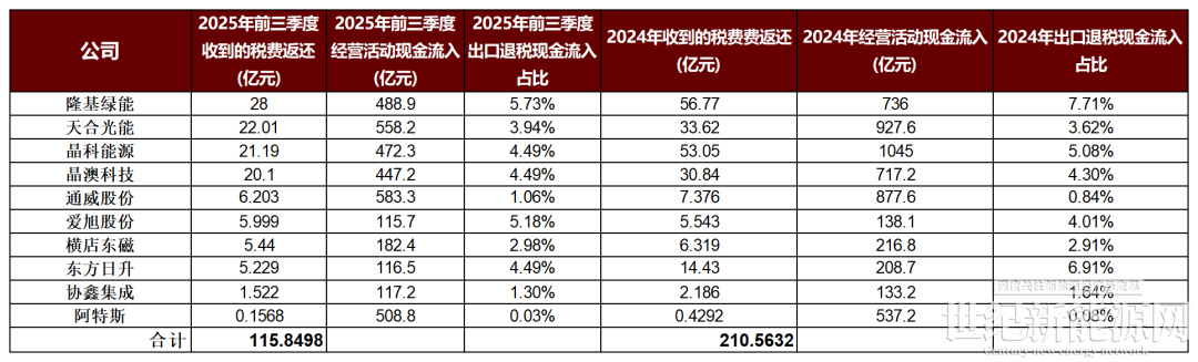 2025年前三季度,四大組件龍頭企業的稅費返還總額超過91億。